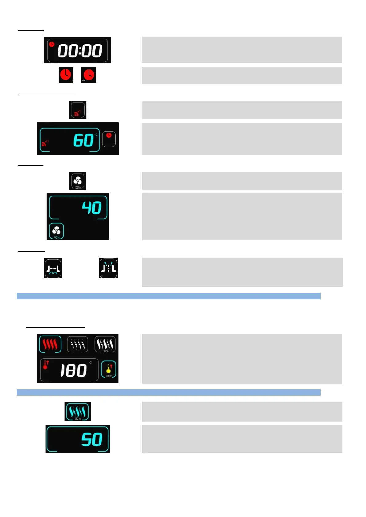 Pressing this touch button switches automatically from time control to core temperature