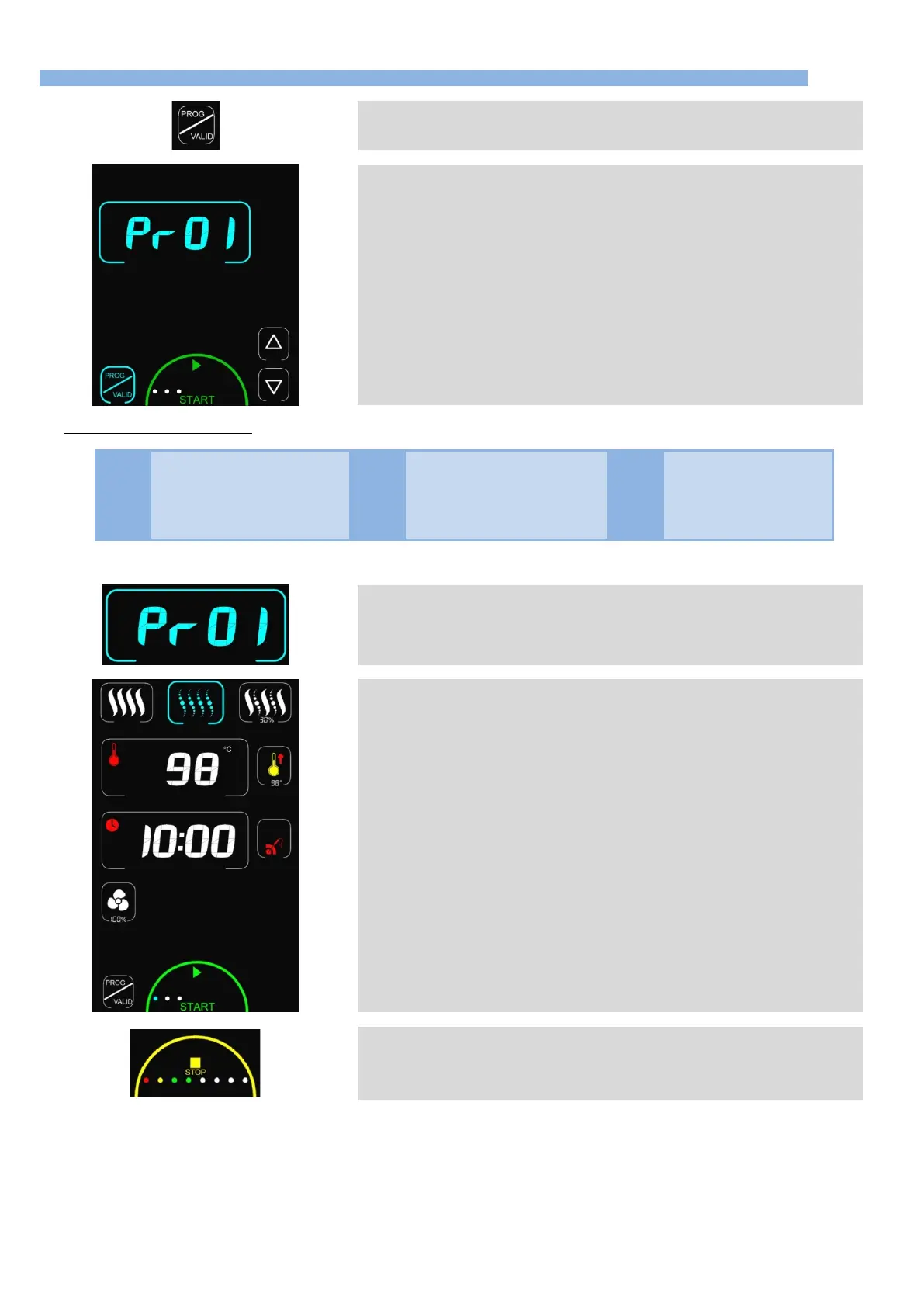 After the last phase consulted the screen shows “Prxx” (the last programme displayed).