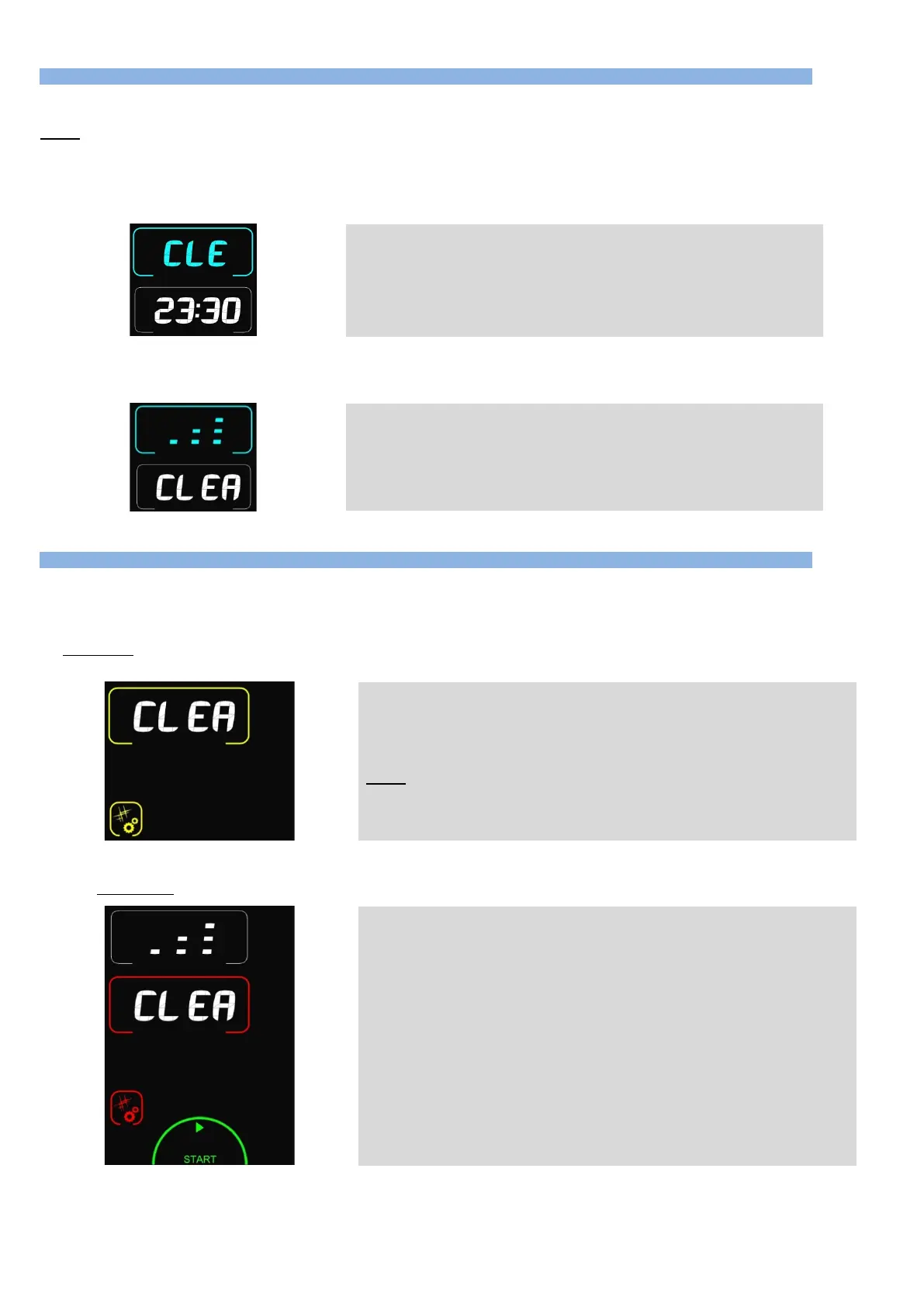 NOTE: It is always possible to start an automatic cleaning cycle manually (see the