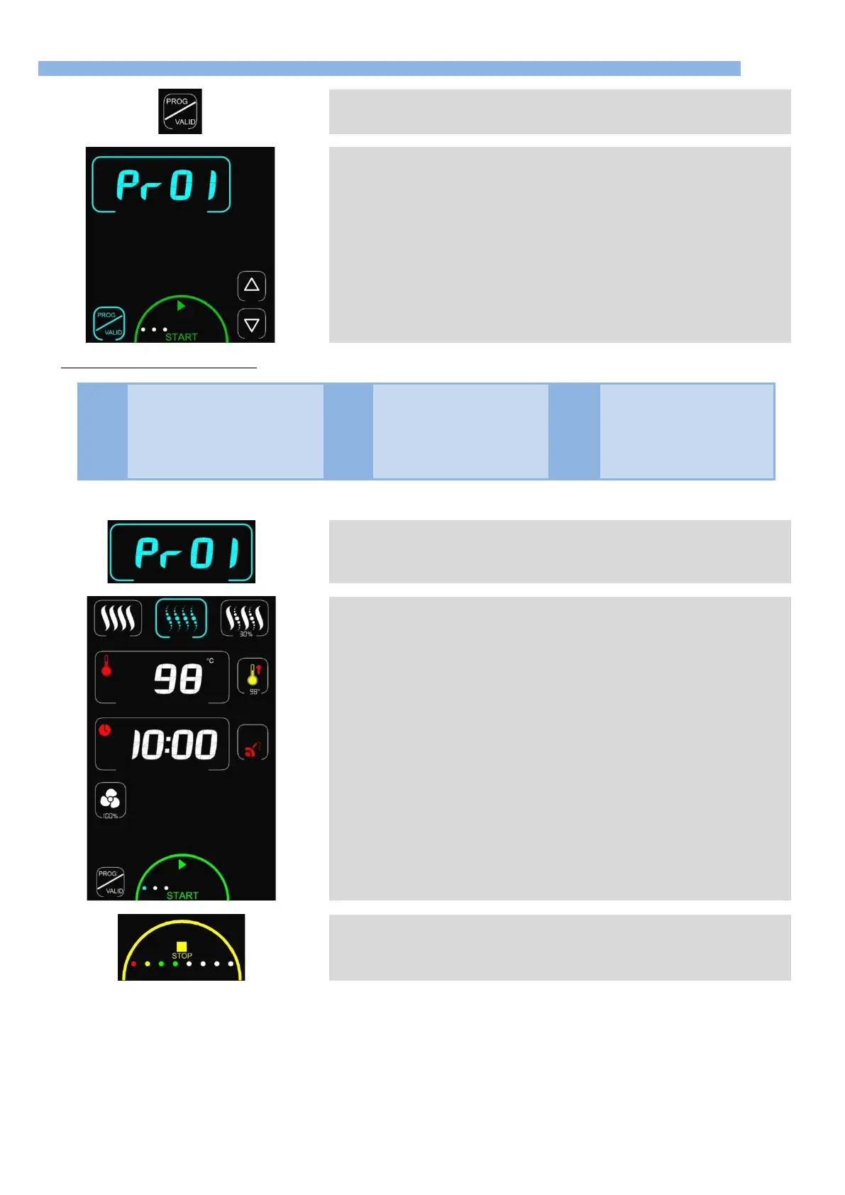 ausgewählten Programms ersichtlich (Betriebsart, Temperatur, Zeit, ...)