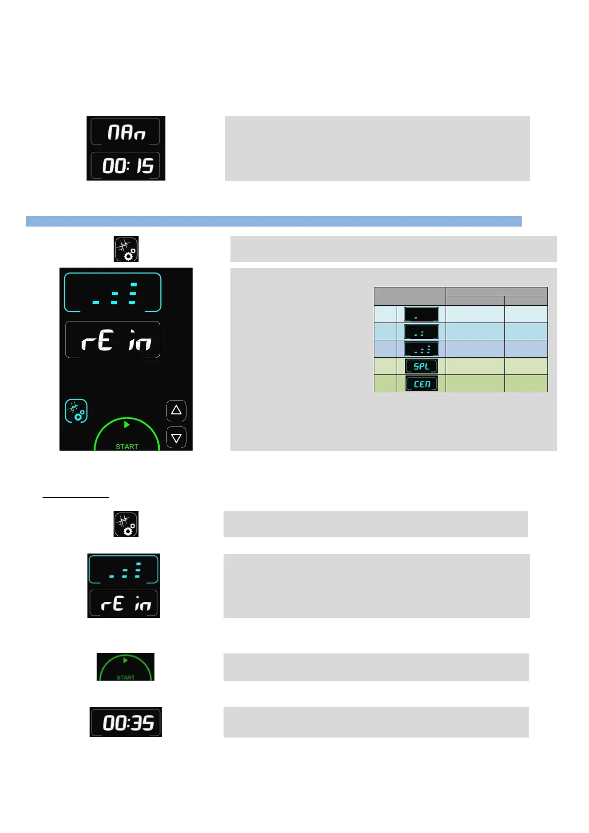 - Während das Feld blinkt (Phase vor dem Einlass des Reinigungsmittels) ist es noch möglich, die Intensität der Reinigung zu ändern.