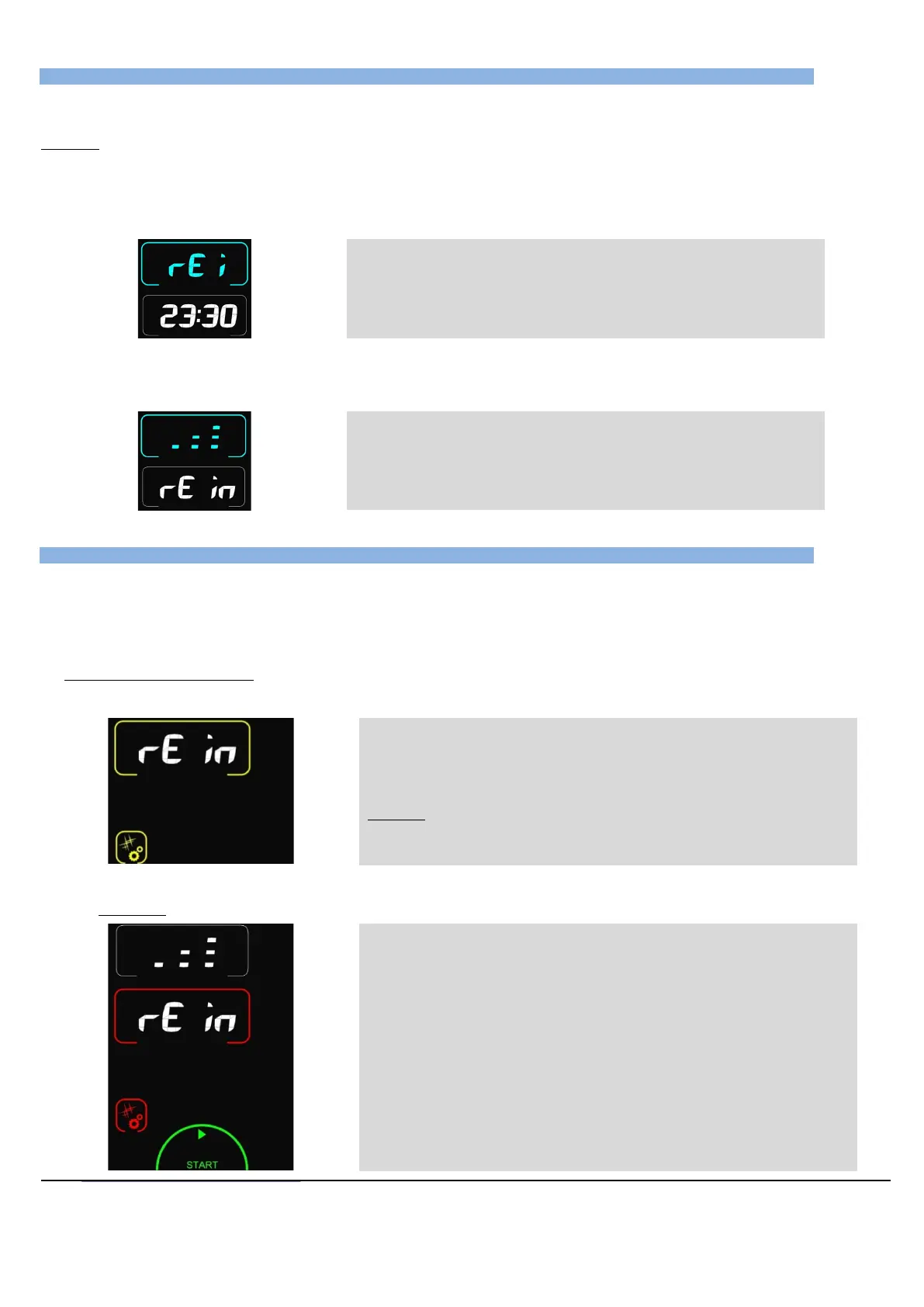 - Falls die maximale Nutzungsdauer des Kombidämpfers ohne Reinigung erreicht ist: ein Sperrbildschirm (rot) erscheint beim Einschalten oder