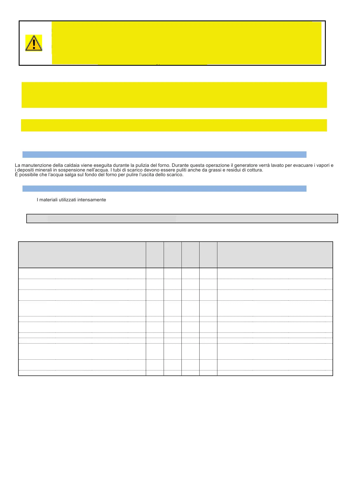 La manutenzione della caldaia viene eseguita durante la pulizia del forno. Durante questa operazione il generatore verrà lavato per evacuare i vapori e