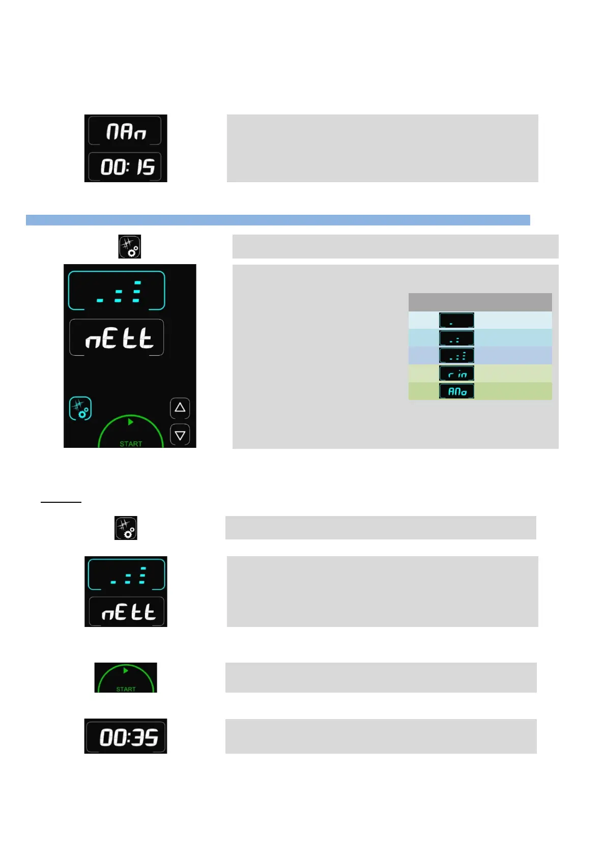 Affichage de « nEtt » (nettoyage) dans la zone minuterie et affichage de l’intensité