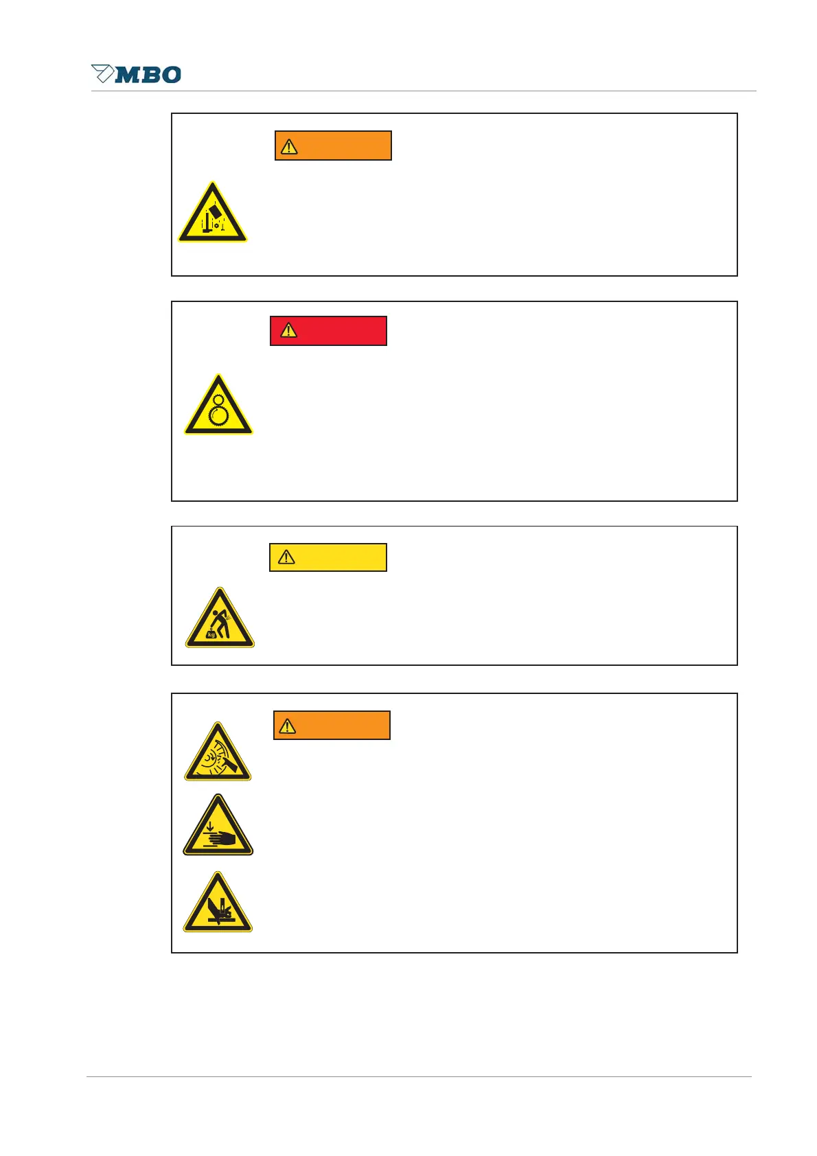 Danger through heavy machines components.