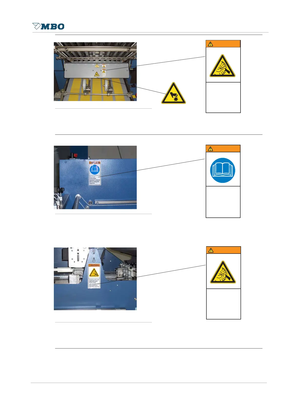 Danger before rotating slitter shafts. Negligence can cause cut or tear off of body parts.