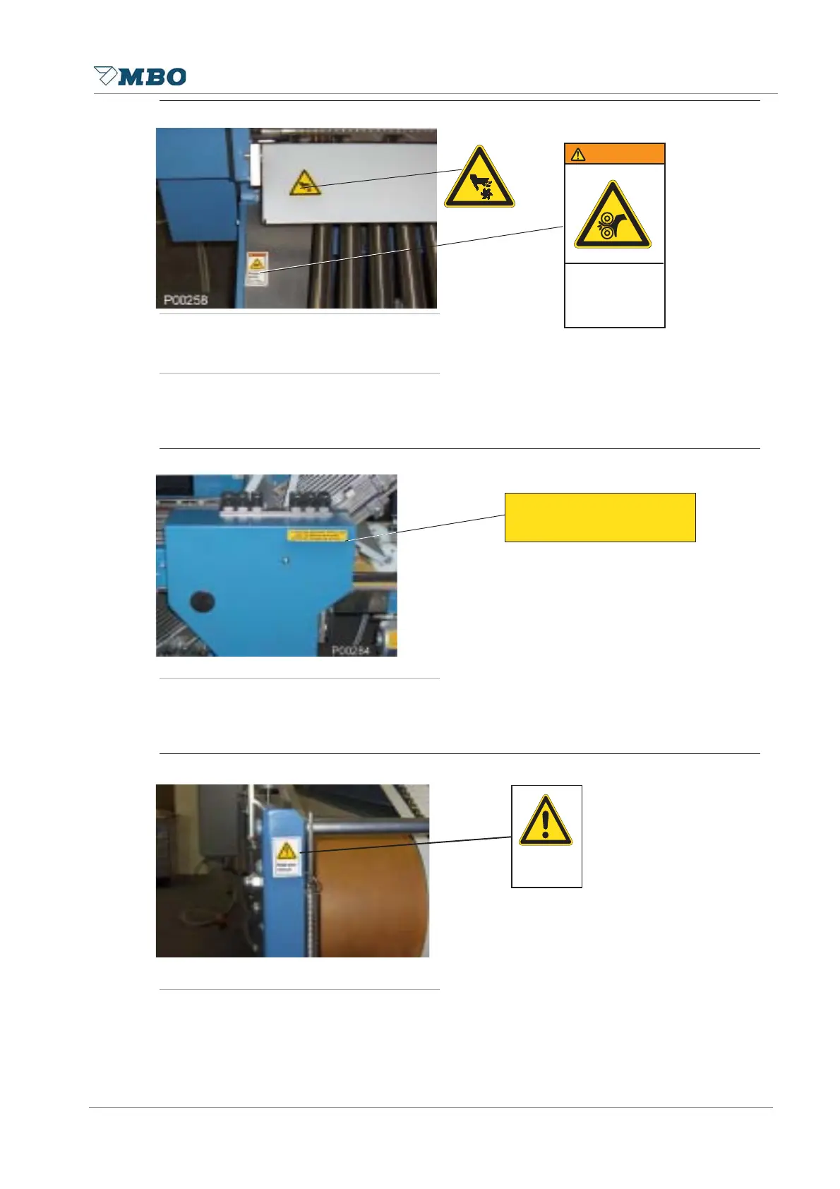 Danger before rotating transport rollers at the sheet transport. Negligence can cause bruises on