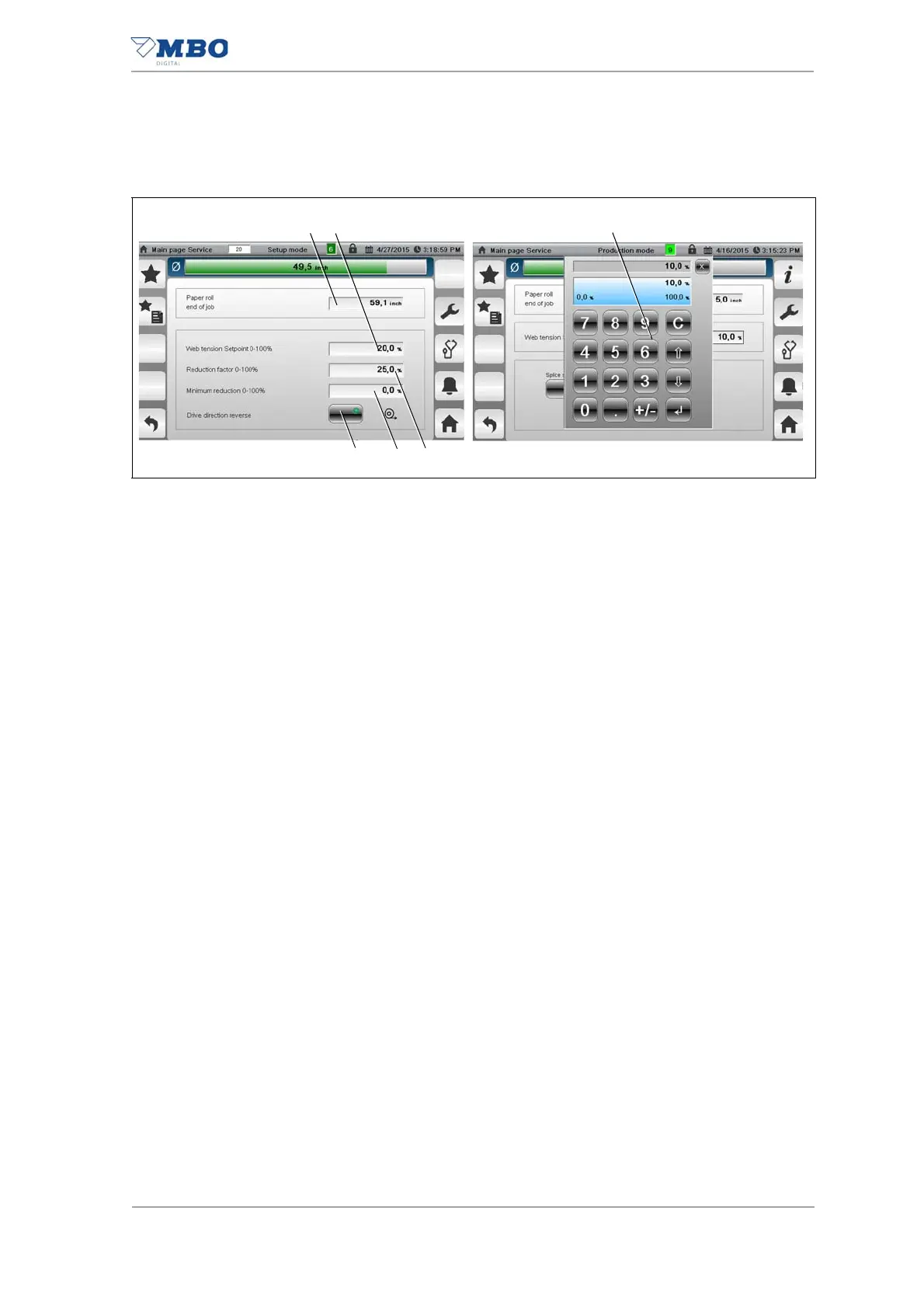 Pressing the input field (4) displays a numeric keypad (3). Enter the required