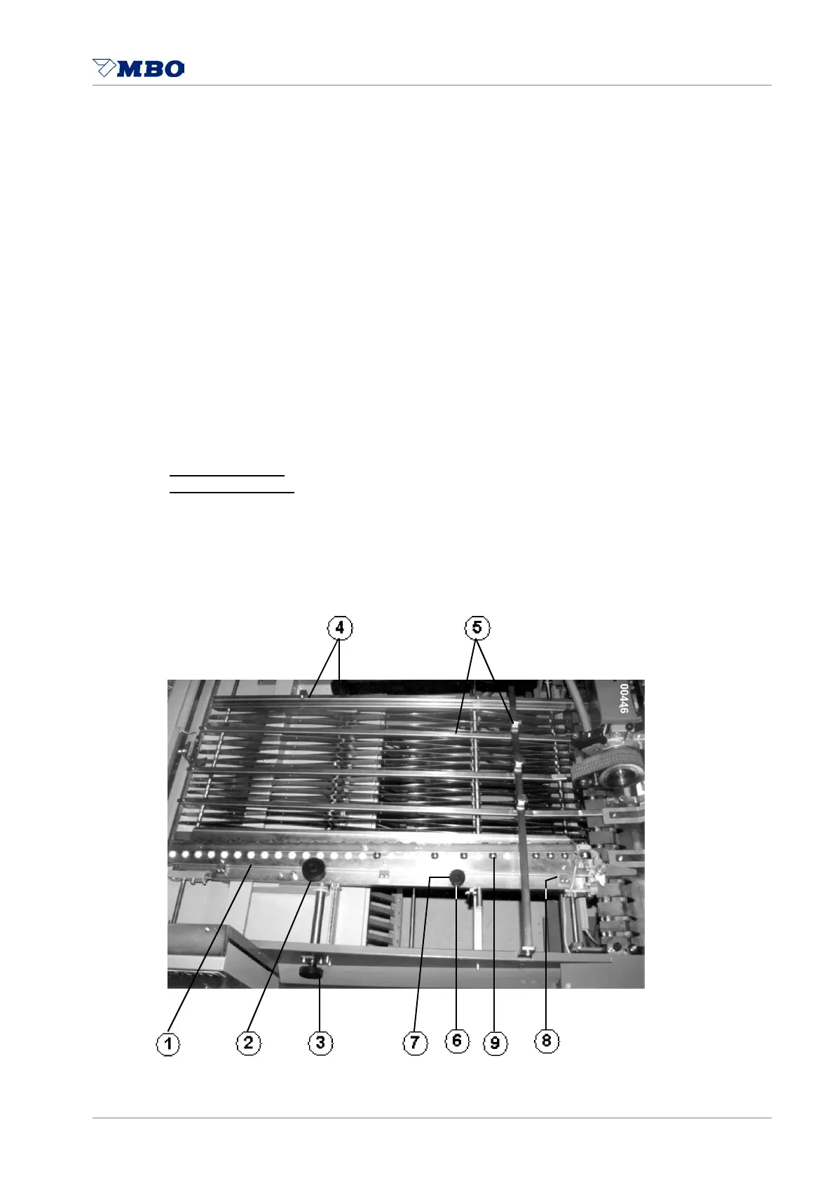 Set the sidelay 1 through the knurled grip 2 to 1/2 of sheet width at mm-scale.
