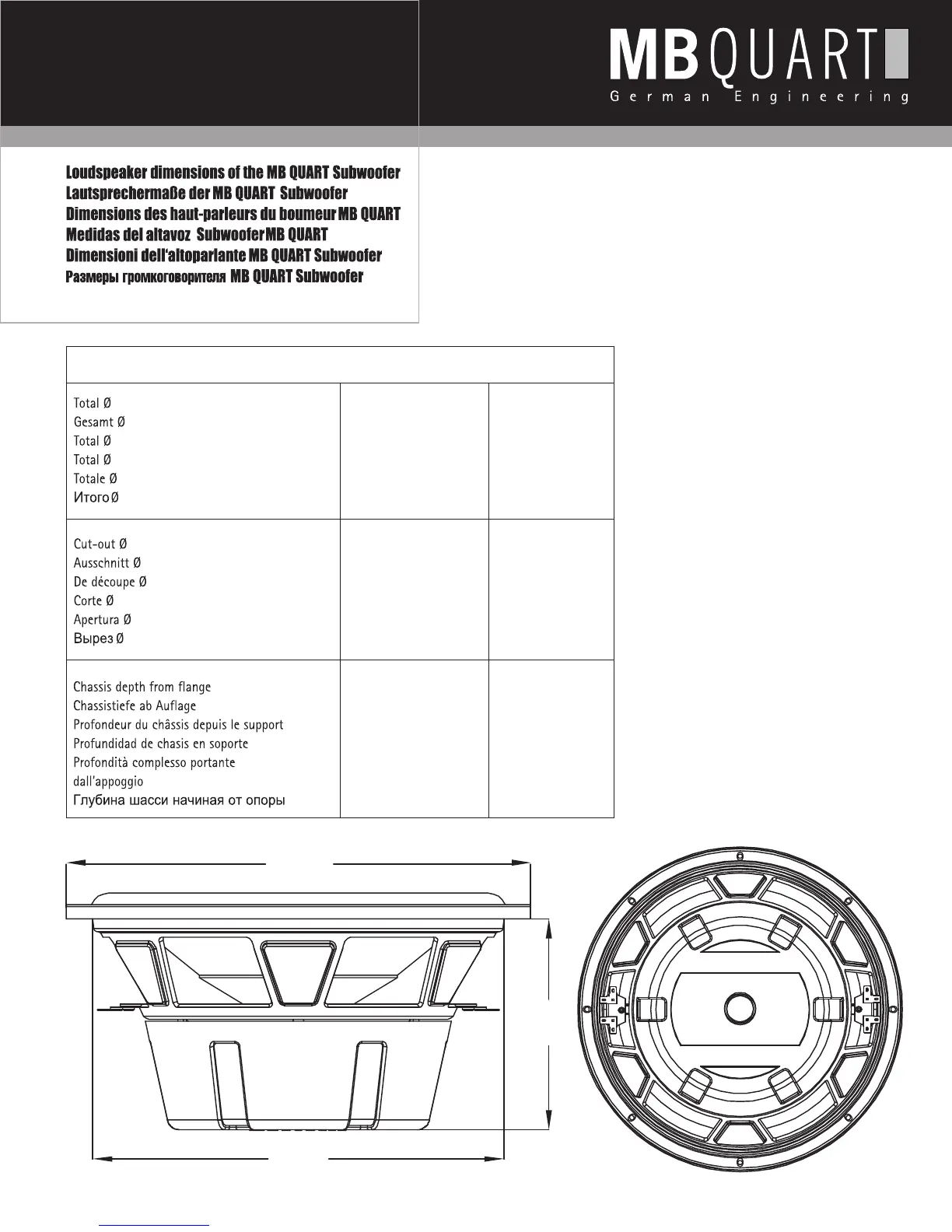 MBQuart FORMULA - Subwoofer Dimensions; Measurement Details and Diagrams