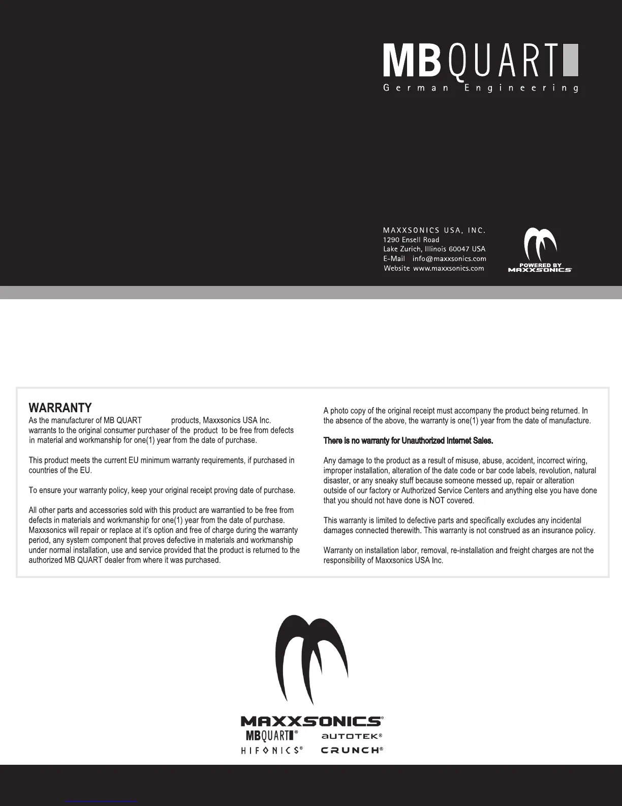 MBQuart FORMULA - Warranty Information; Coverage and Claim Procedures
