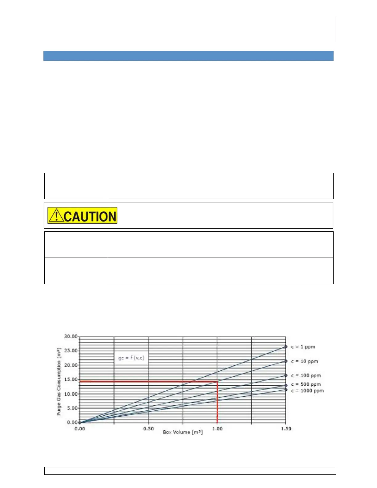 14.50m³ of purge gas per cubic meter of box volume (refer to the Box Volume Table below):