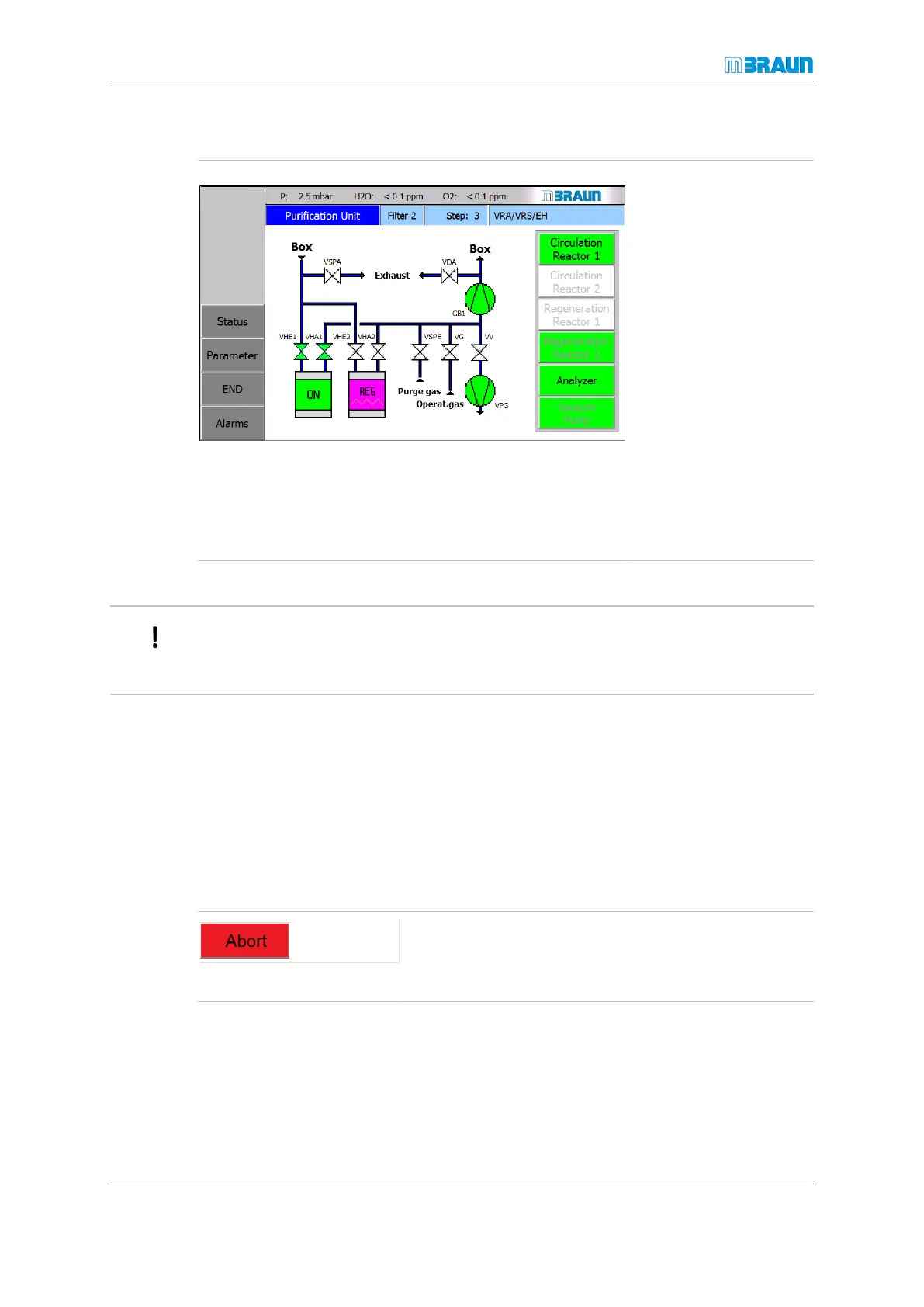 An Abort button is display in the screen during those steps along the regeneration pro-