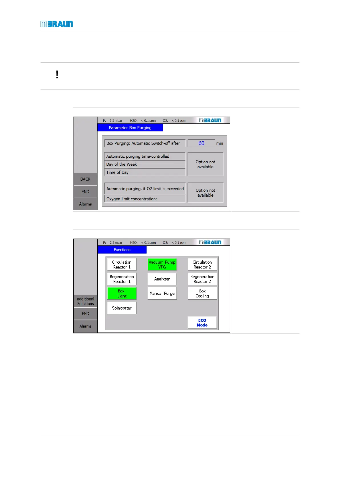 Set parameter for manual glovebox purge