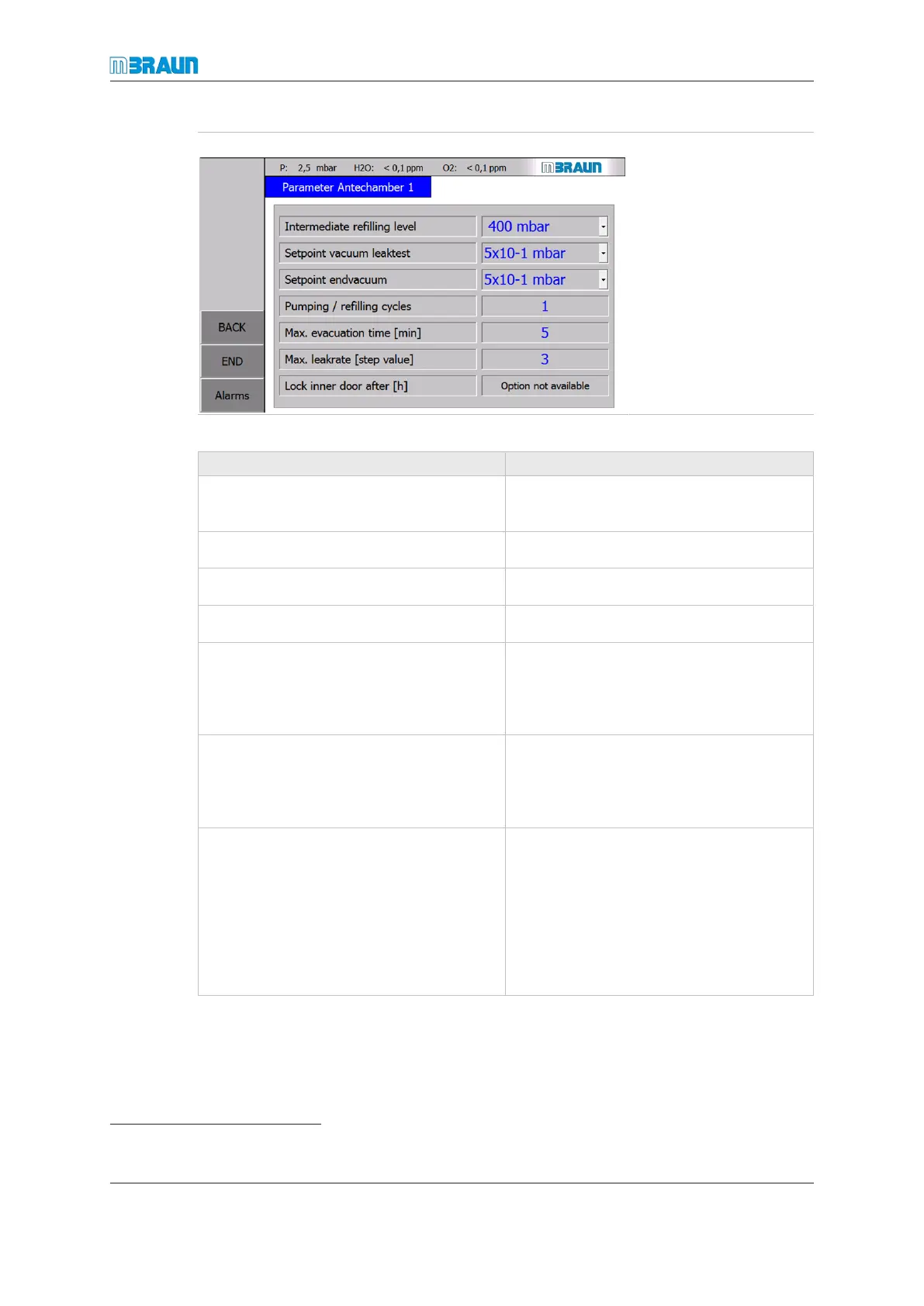 For preset values refer to parameter table below in chapter Human machine interface