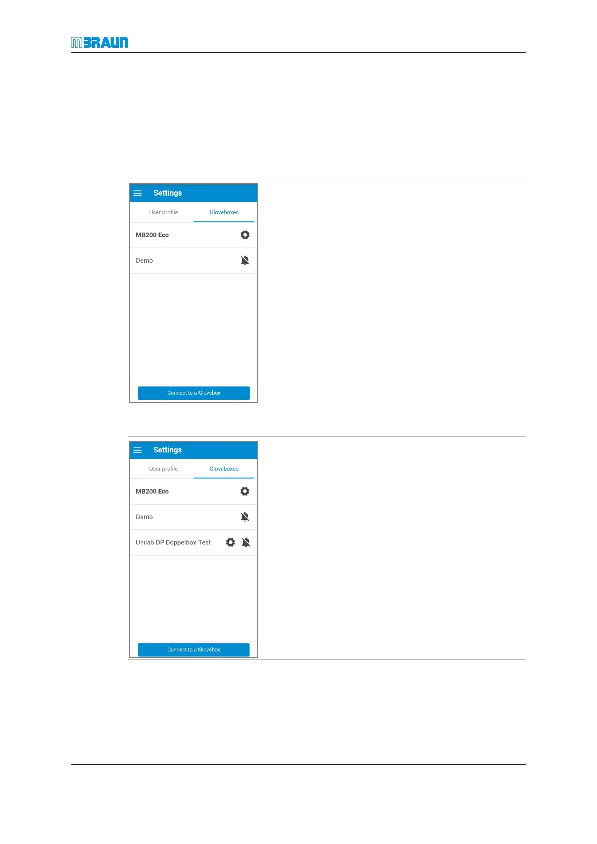 After a glovebox has been registered, its name is displayed in the glovebox list.