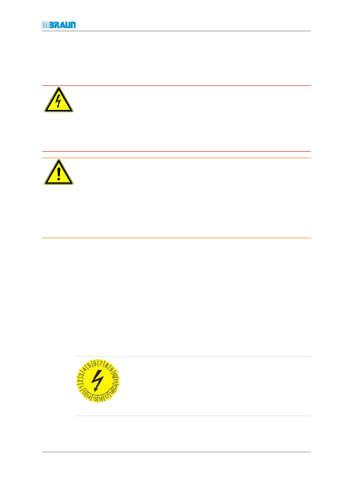 ► If no emergency off button is provided on MBRAUN equipment, deactivate circulation