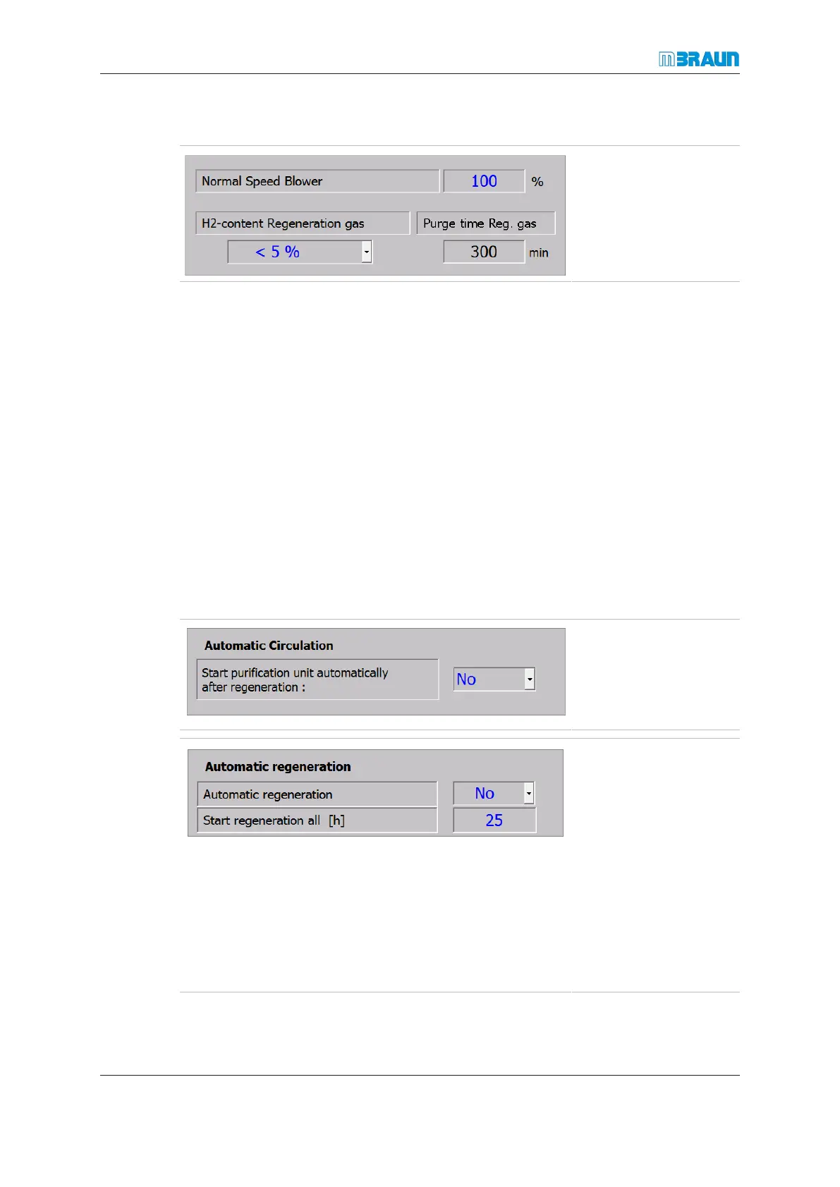 concentration > 5% in the regeneration gas: approx. 960 min (16 h)