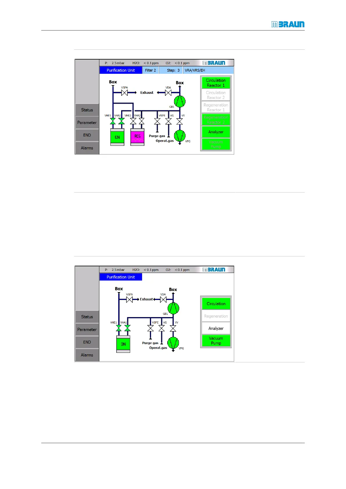 To configure an automatic activation of circulation after a regeneration cycle, refer to Puri-