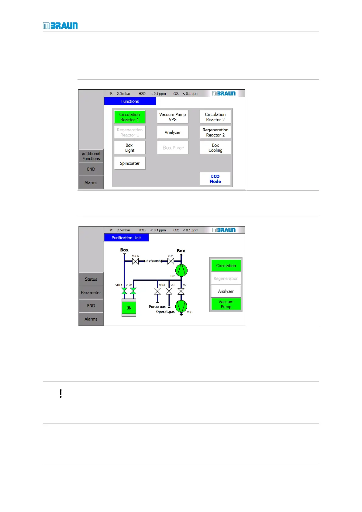 If the glovebox is not in operation – i.e. the glovebox is not in circulation or glovebox pur-