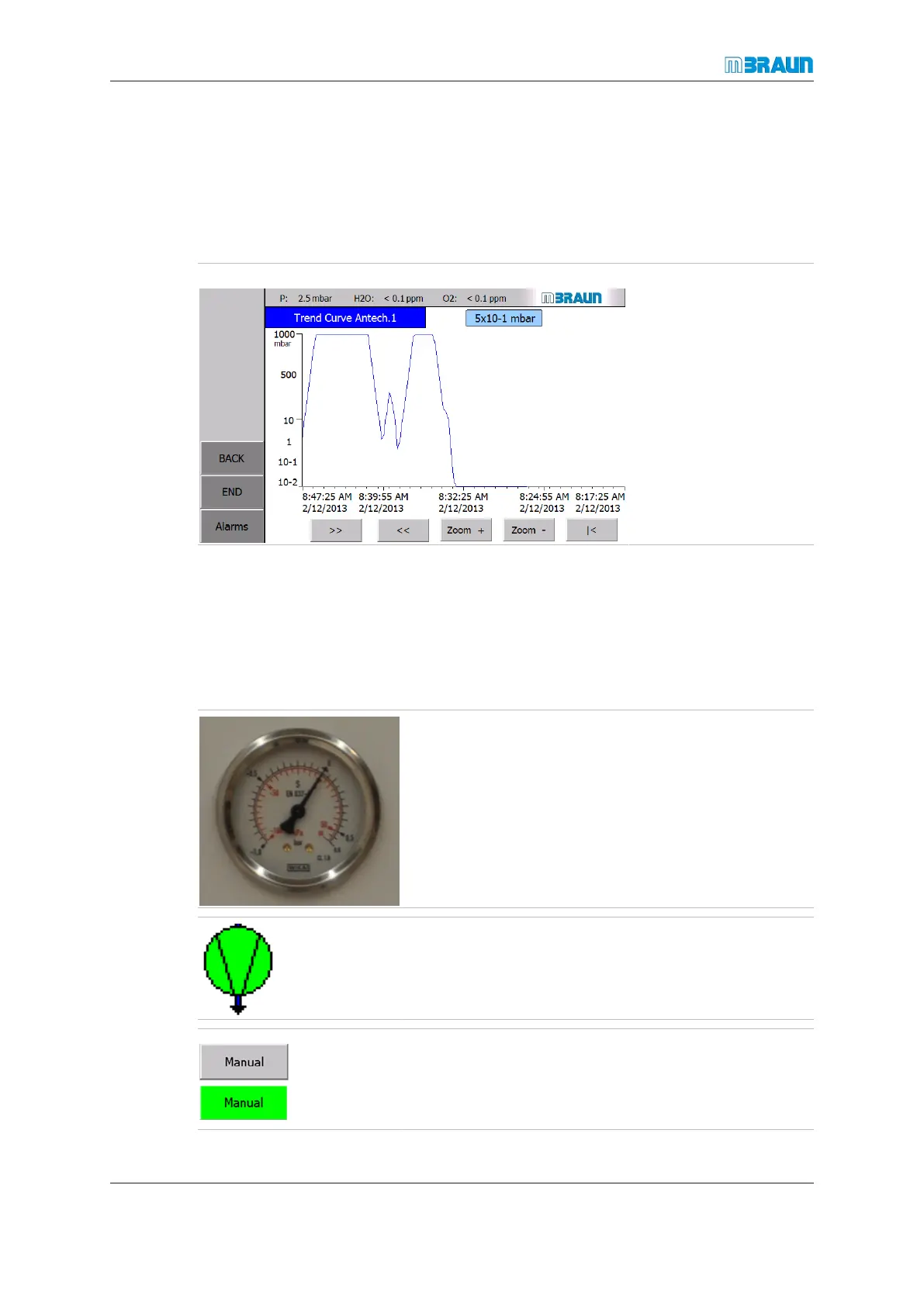 The antechamber pressure is manually monitored on the mechanical pressure gauge.