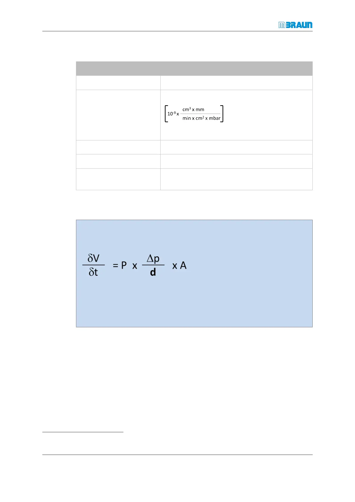 V = gas volume, t = time, p = pressure, d = thickness, A = exposed surface of the ma-