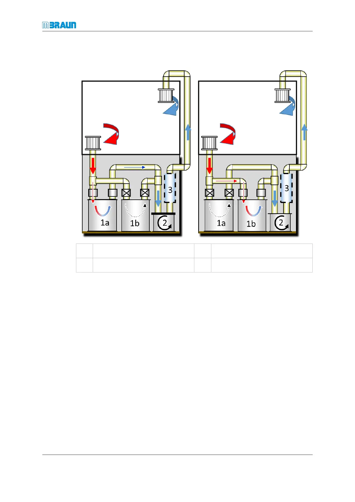 ¡ Figure left: reactor 1b is regenerated while the box atmosphere is circulated through
