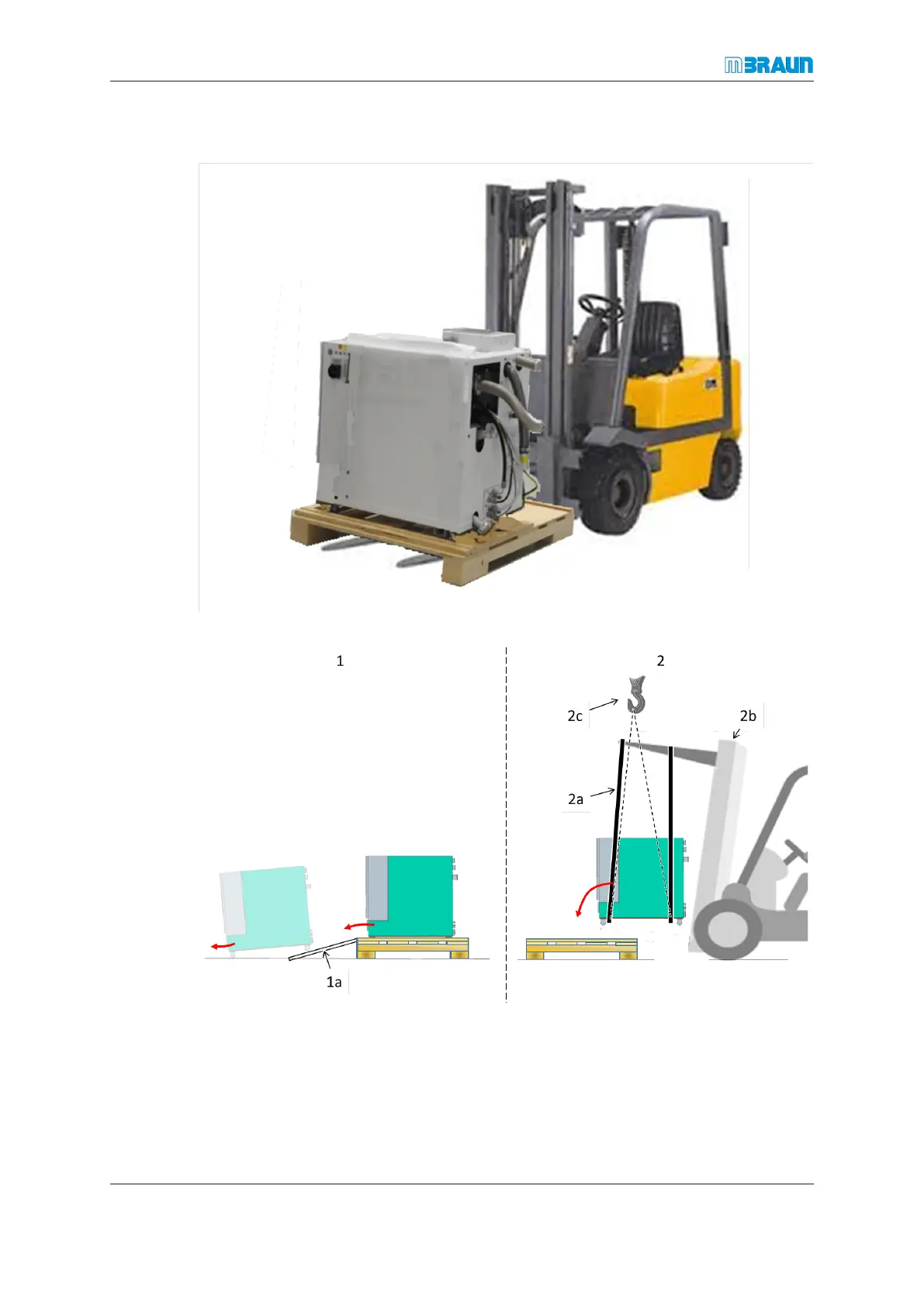 ► Use a forklift(2b) with sufficient lifting capacity to lift the gas purifier.