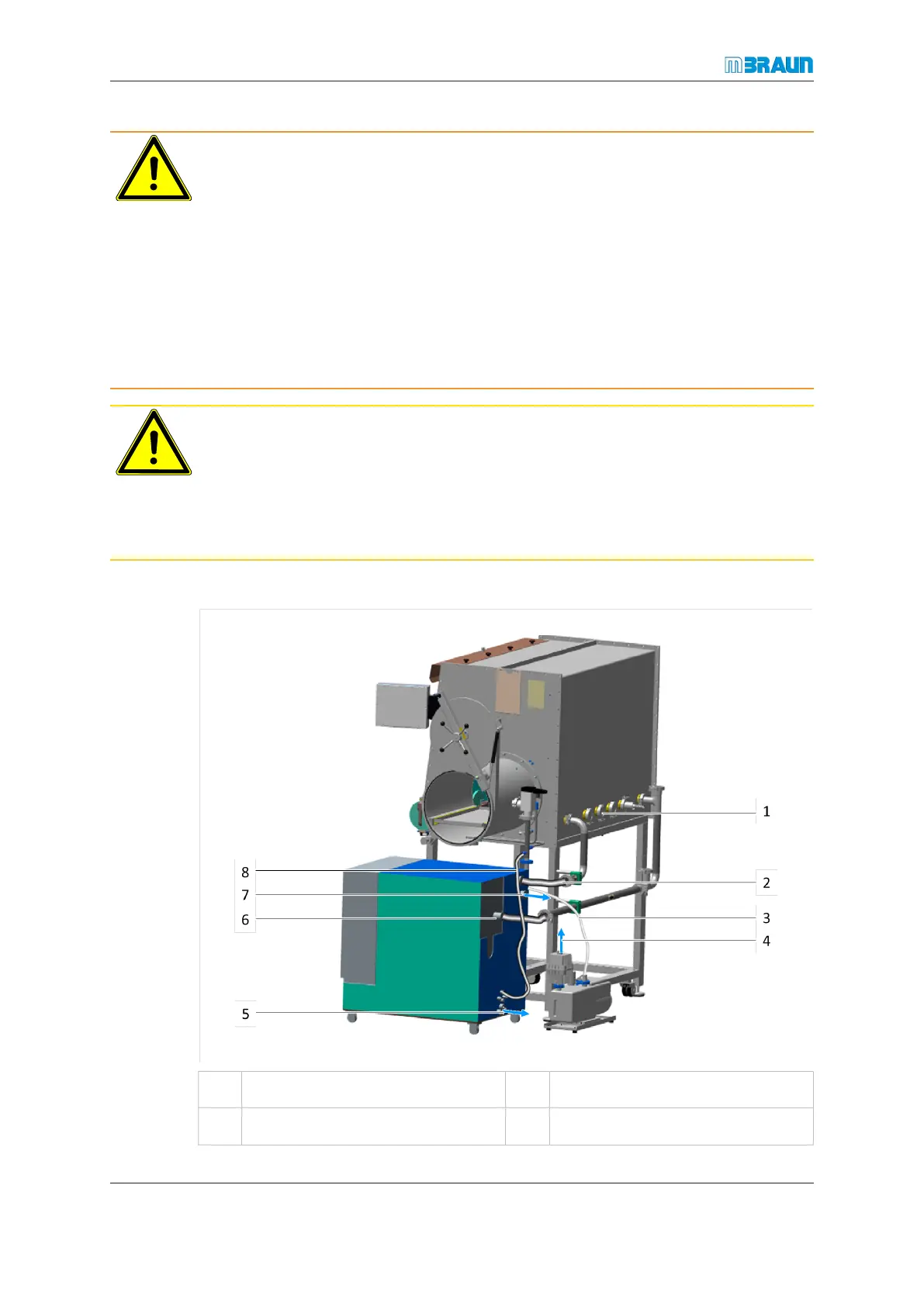 1 Feedthroughs 2 Gas inlet pipe of the glovebox
