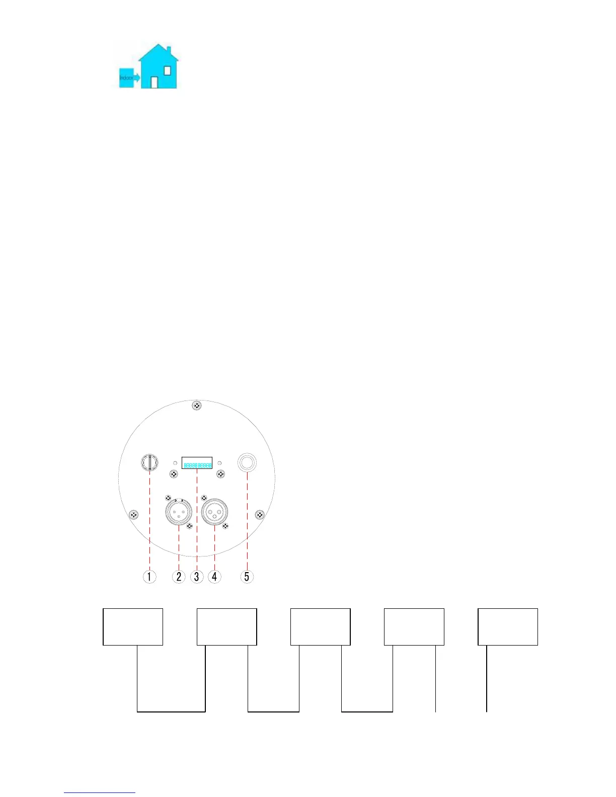 1、Sensitivity 2、DMX Intput 3、DIP SWITCH 4、DMX Output 5、MIC