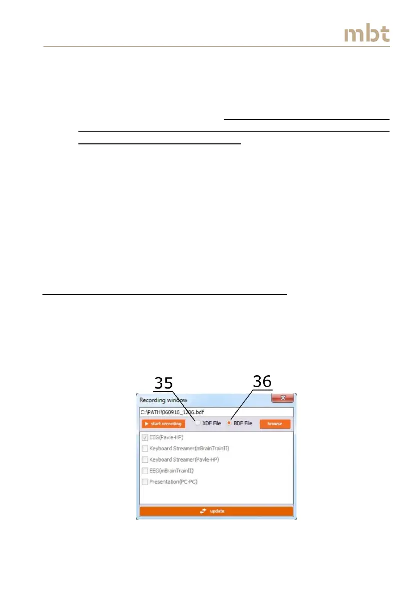 recording will be made in .XDF (by checking the XDF file – 35) or .BDF (by