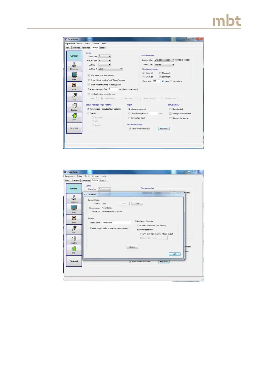 Figure 10.1 Presentation general settings window – Thick the LSL checkbox