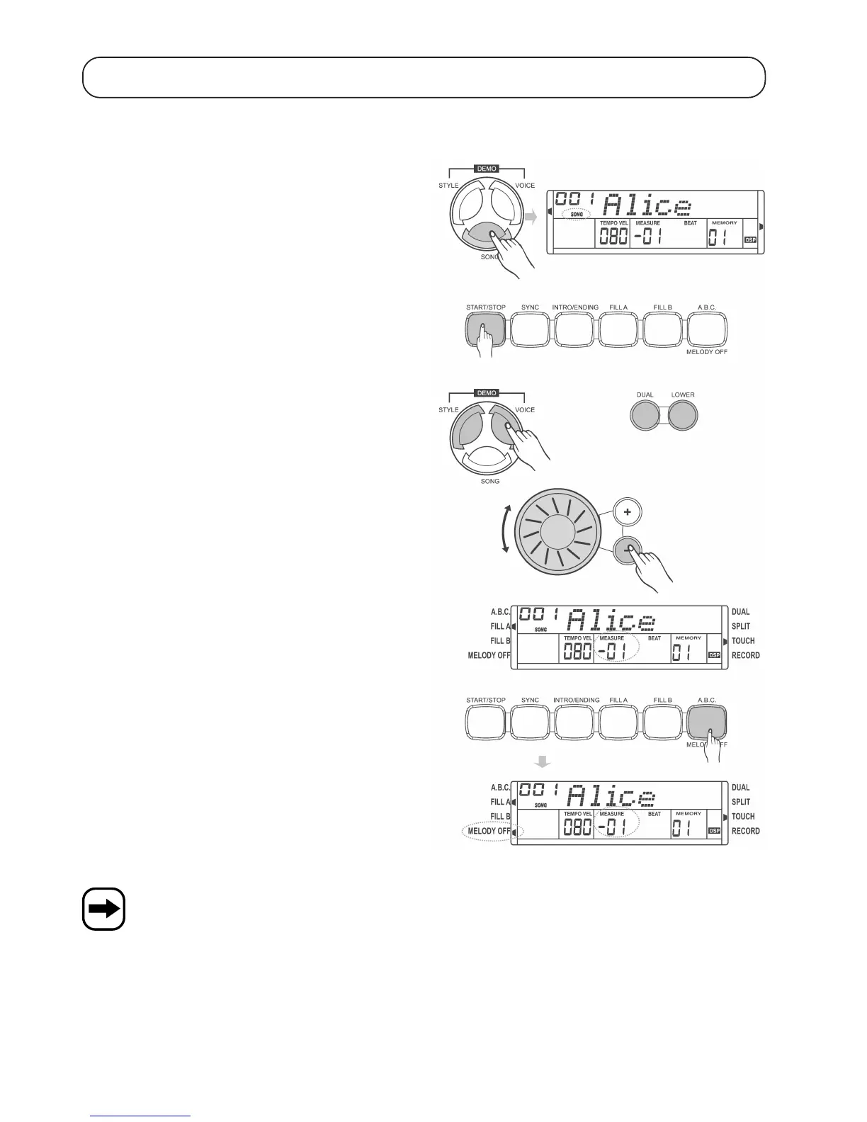 symbool naast "MELODY OFF".