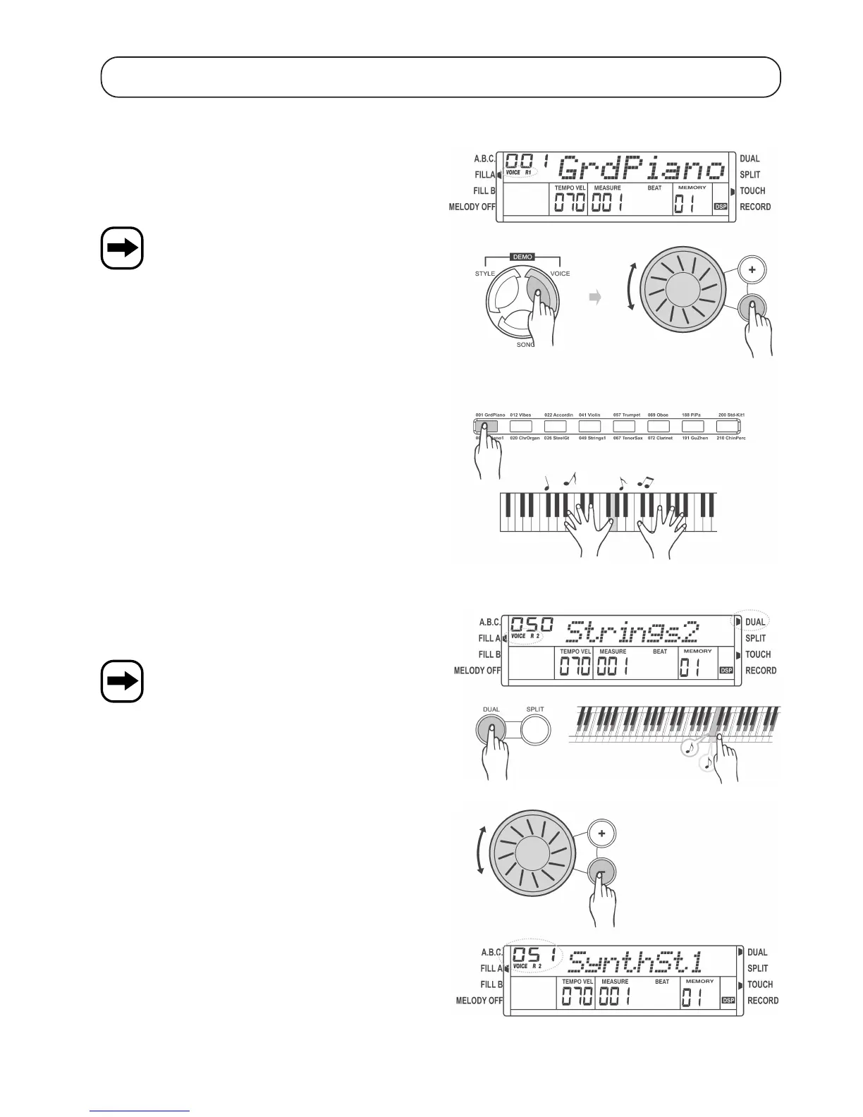 b) Dual sound effect („DUAL VOICE“), „DUAL“ button