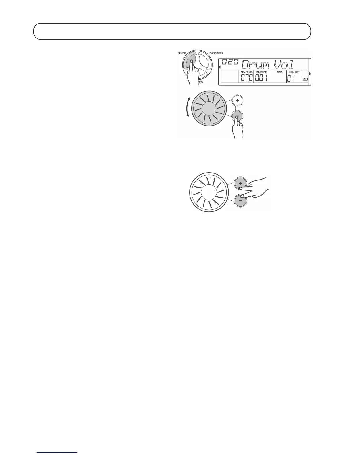 above using the „MIXER“ button. Then press the „+“ und „-“ buttons