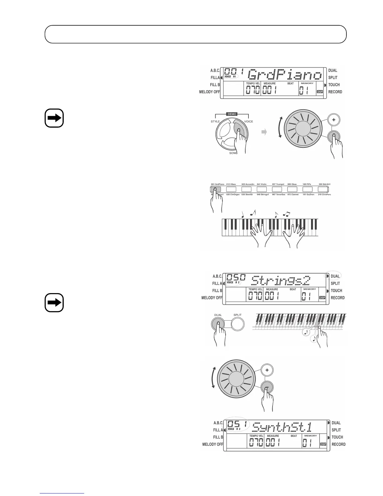 b) Effet double son (« DUAL VOICE »), touche « DUAL »