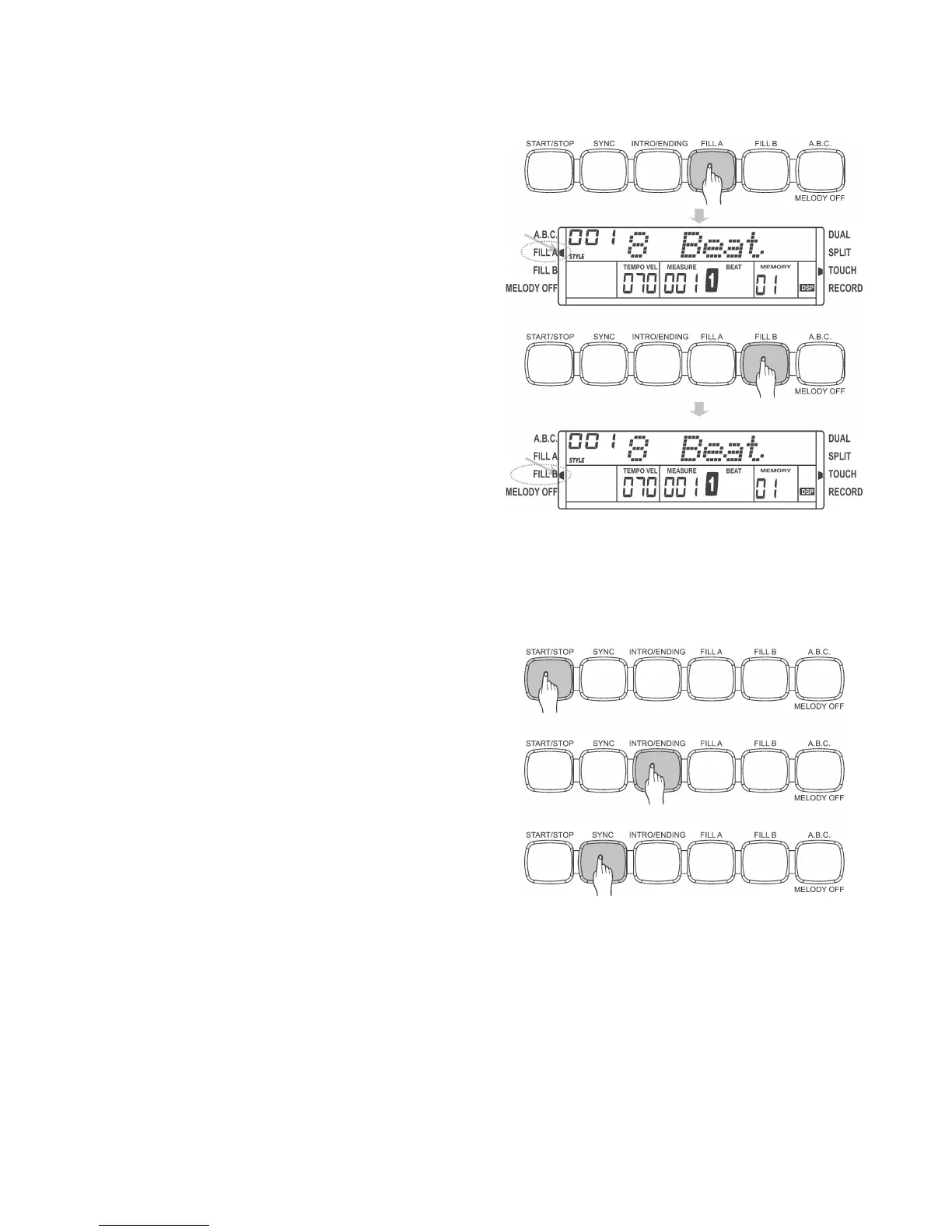 lorsque vous appuyez sur la touche « FILL B », ensuite le rythme