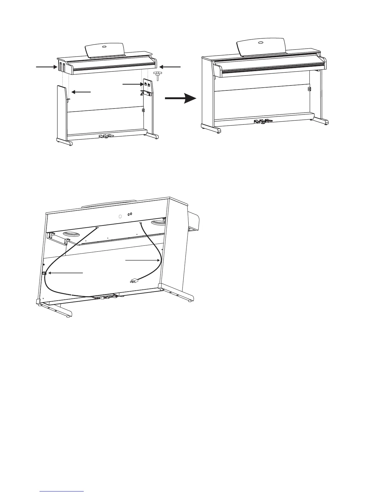 den verstellbaren Standfüßen können evtl. Unebenheiten des Bodens ausgeglichen werden, so dass das Digital-Piano stabil steht und nicht
