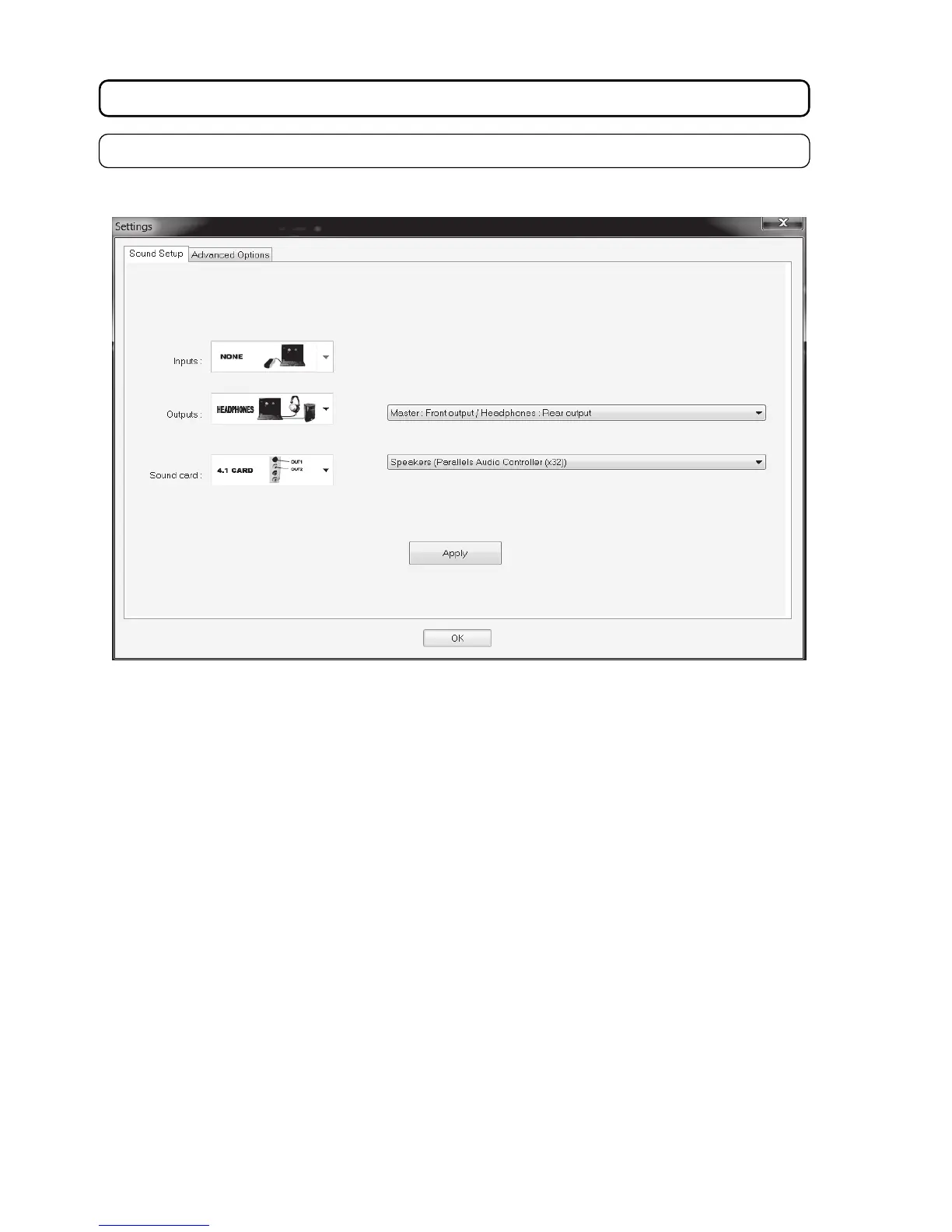 • In the selection field SOUND CARD, set “4.1 CARD”.
