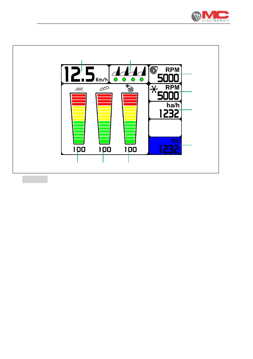 1. Speed: Work speed indicator, if the sensor is present.