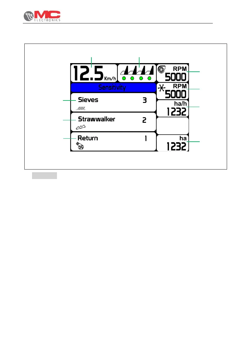 1. Speed: Work speed indicator, if the sensor is present.
