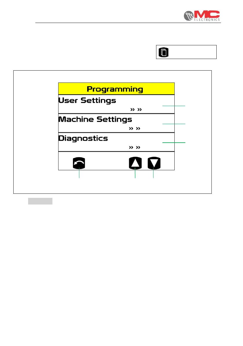 2. Machine settings: the screens contained in this sub-menu are protected by a