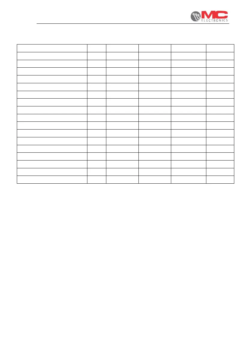 MC Electronics GLM KIT - Programmable Parameters; Parameter Reference Table