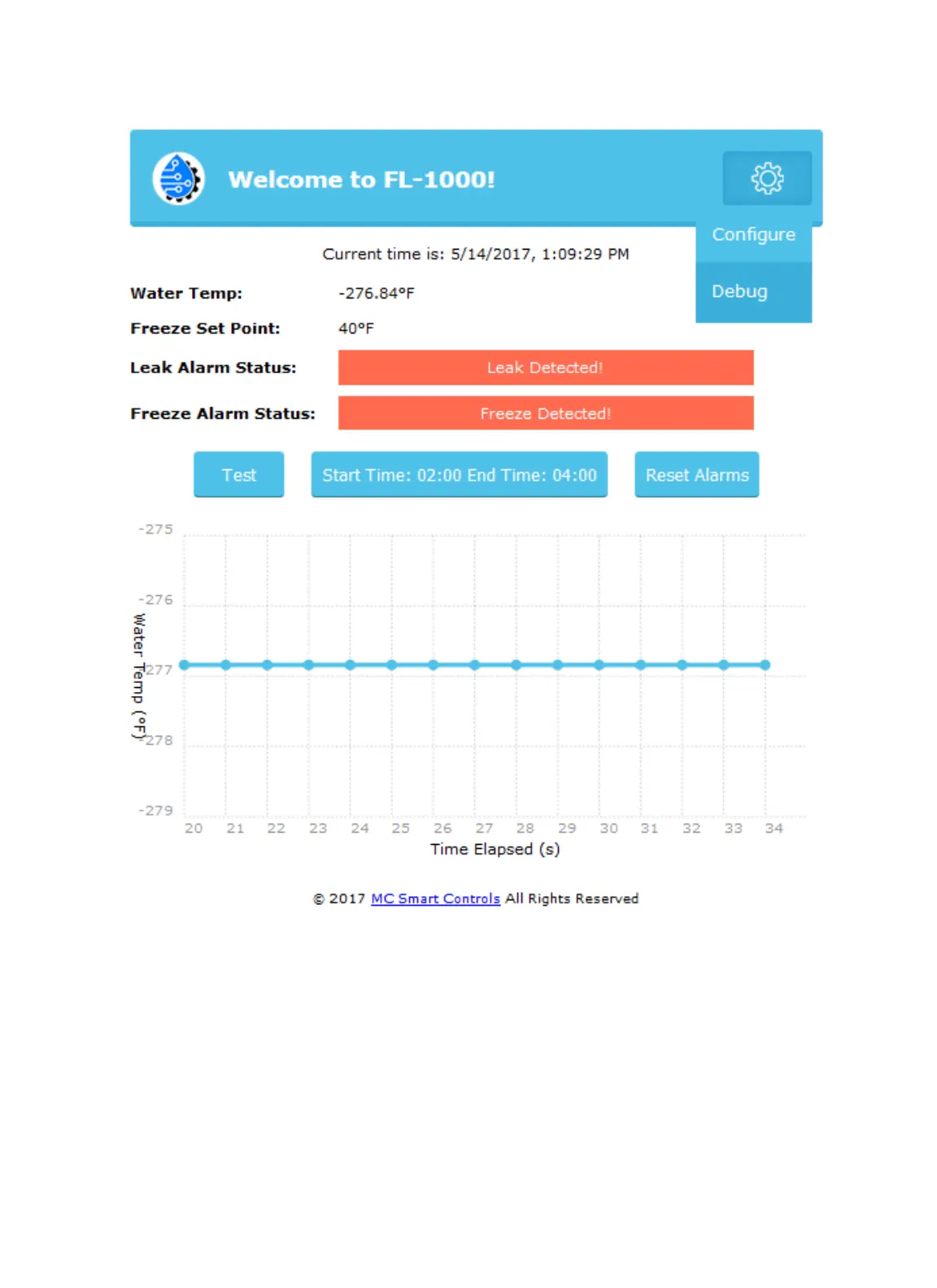 Freeze Alarm Status- This is triggered when the water temperature goes below the Freeze set point.