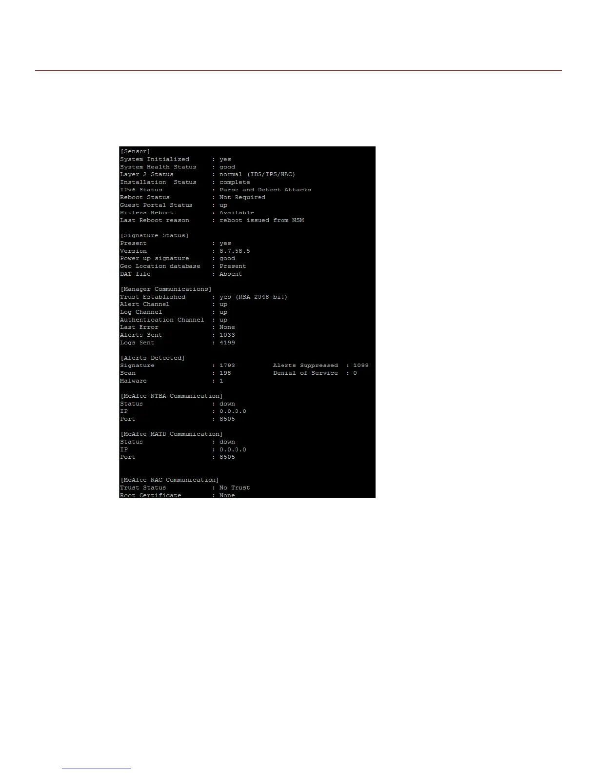 McAfee NS5100 - Verify Successful Installation; Check Sensor CLI Status