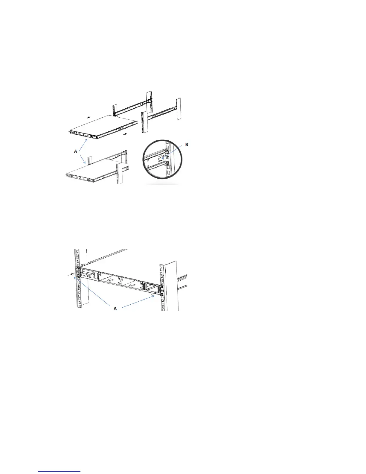 Drive the screws through the inner member ange and through the rack rails. The screws thread