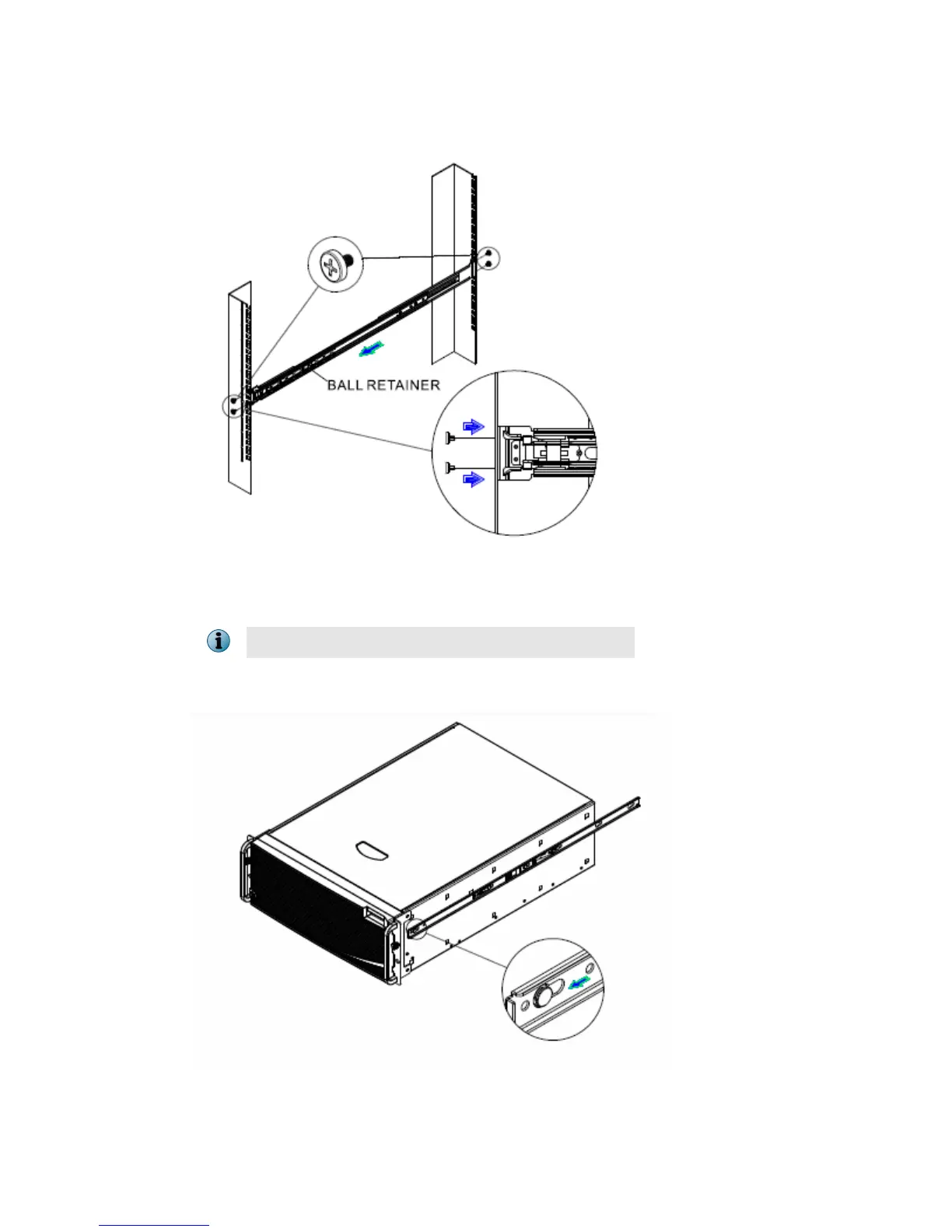 Align brackets to desired vertical position on the rack and insert the fasteners. Move the ball retainer to the