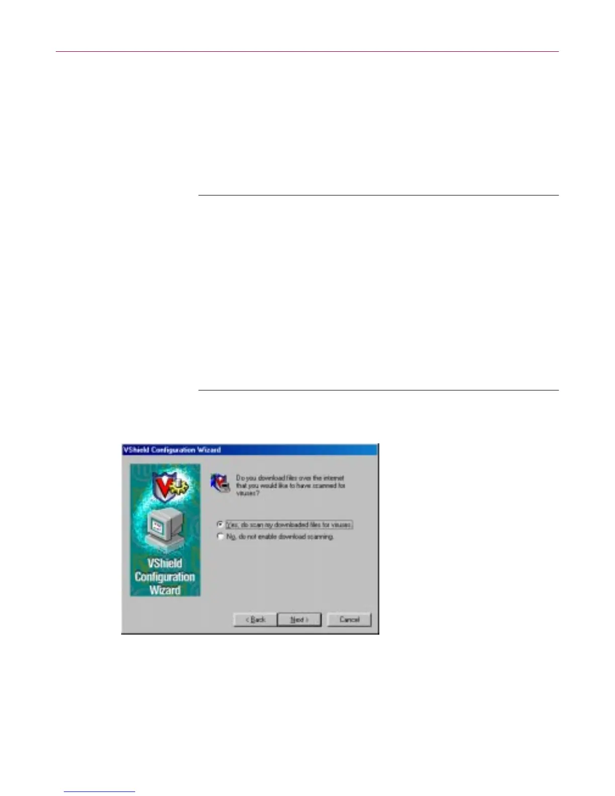 The next wizard panel sets options for the VShield Download Scan
