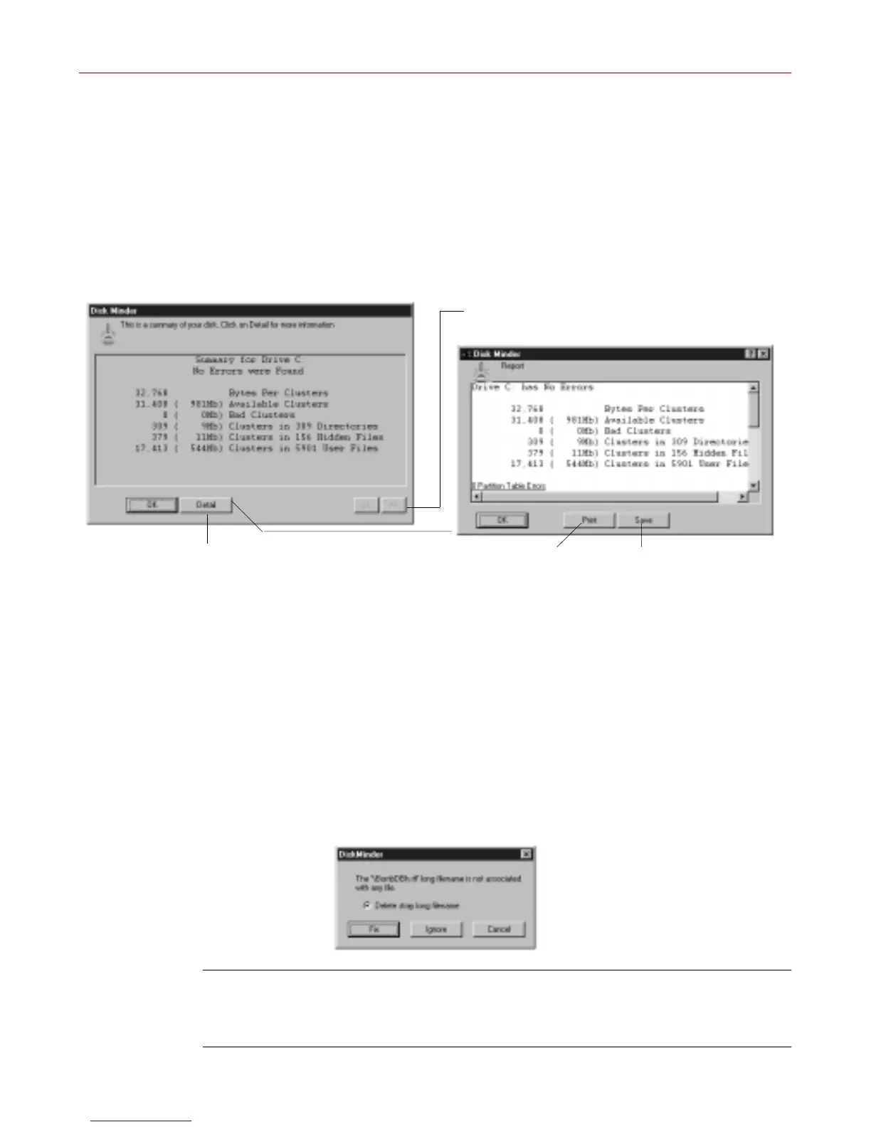 Before interact ively fixing err ors, you can run Disk Mind er with t he Repor t
