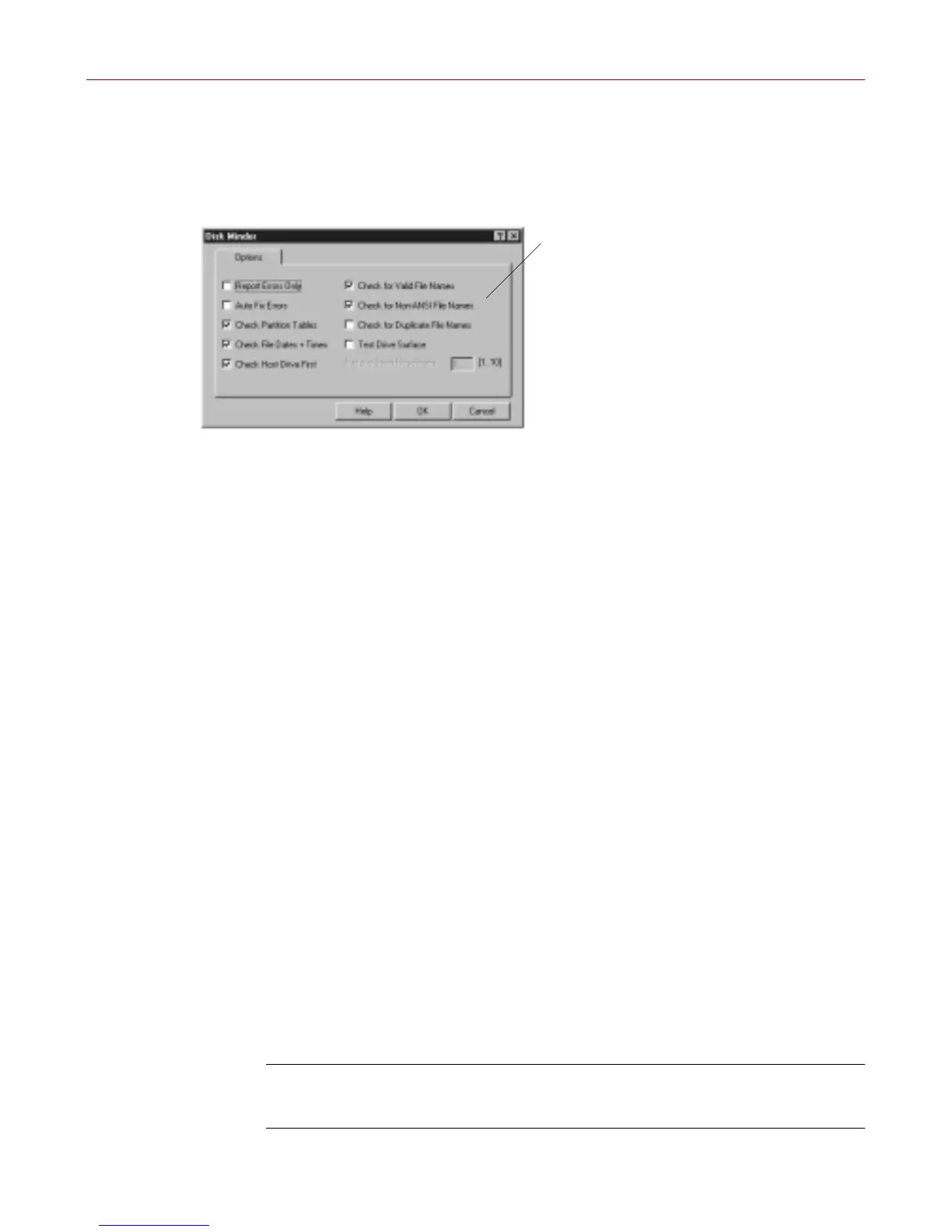 • Check for Non-ANSI File Names–f inds any non-ANSI f ile names. All